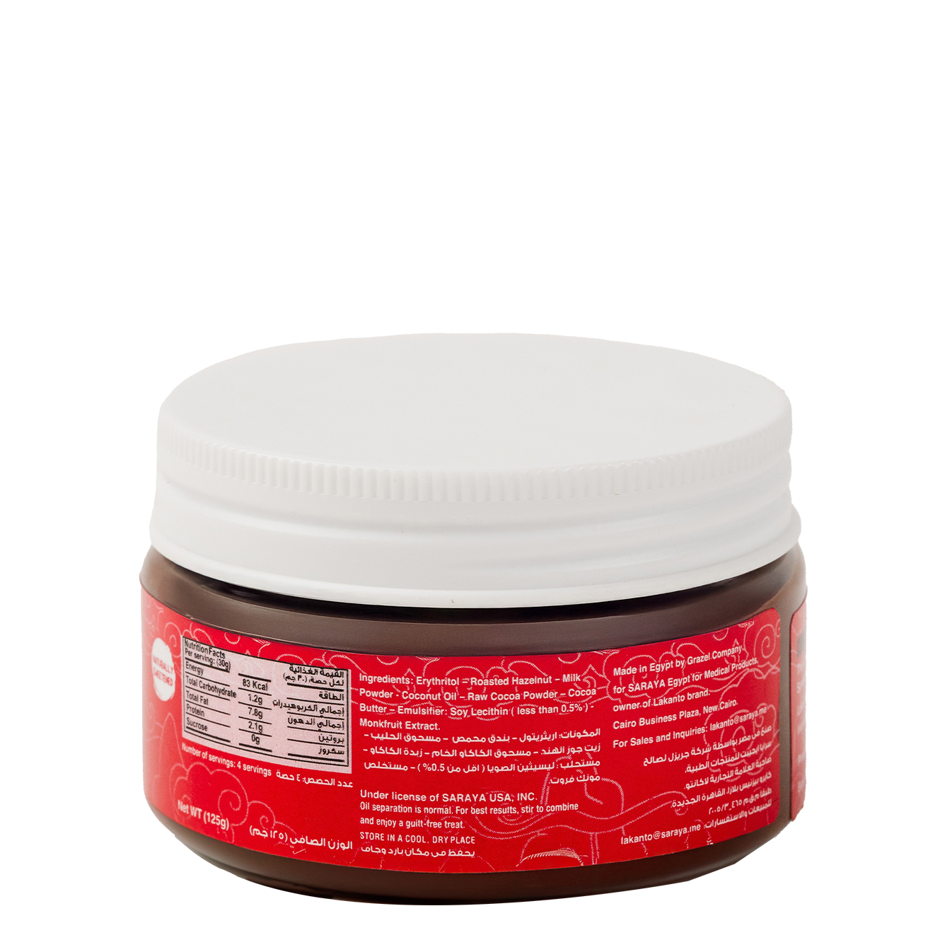 Erythritol – Roasted Hazelnut – Milk Powder – Coconut oil – Raw Cocoa Powder – Cocoa Butter – Emulsifier: Soy Lecithin (less than 0.5%), Monkfruit Extract